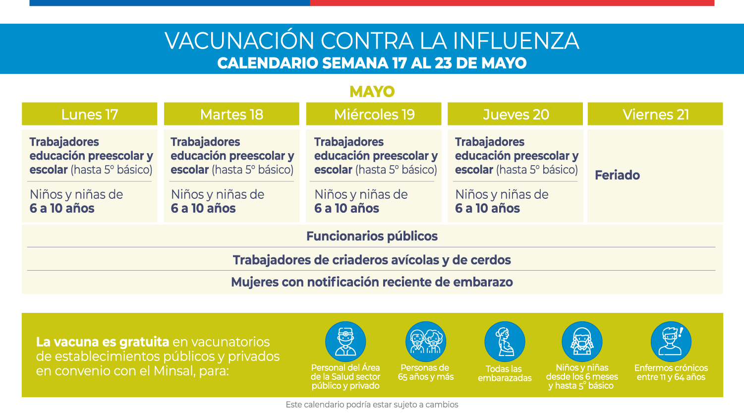 11 de marzo de 2021actualizado a las 03:25 h. Según lo indicó el mandatario, durante los meses de febrero y marzo se espera inmunizar a más de 5 millones de personas, entre funcionarios de la salud por lo mismo, el gobierno de chile ya publicó la primera etapa del calendario de vacunación covid 19, que contempla el periodo entre el lunes 3 y. Creo que aquellos niños, por tener enfermedades que afectan. Una de las preguntas más frecuentes es respecto a cuál será el calendario de vacunación y los grupos prioritarios. Contenidos de la etiqueta calendario de vacunación covid chile 2021.